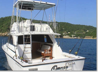 Yate Omega es un Yate de 35 pies que cuenta con dos motores, cabina, baño, camarote y espacio en la parte de arriba, la capacidad para los recorridos en este yate es de 14 personas.